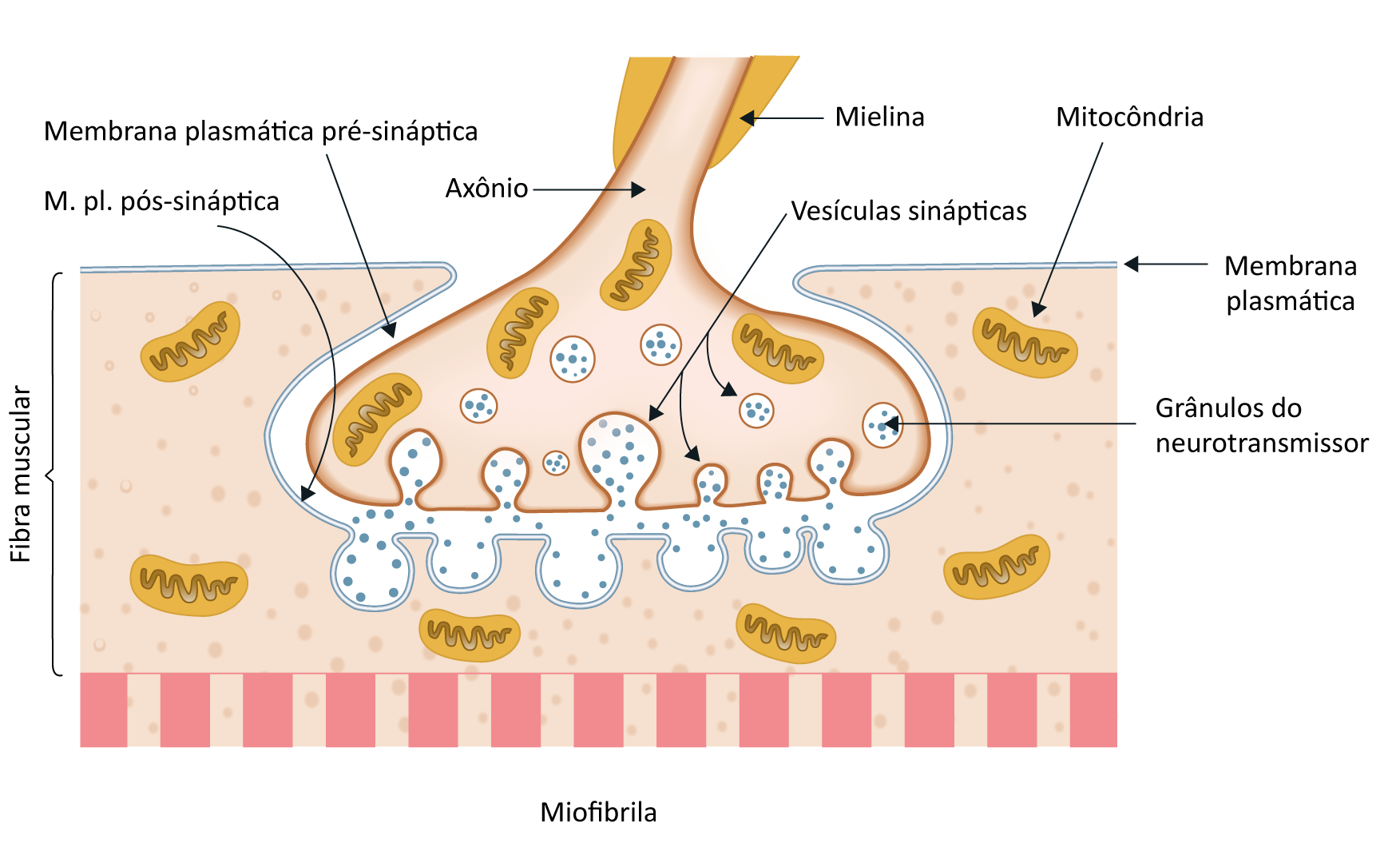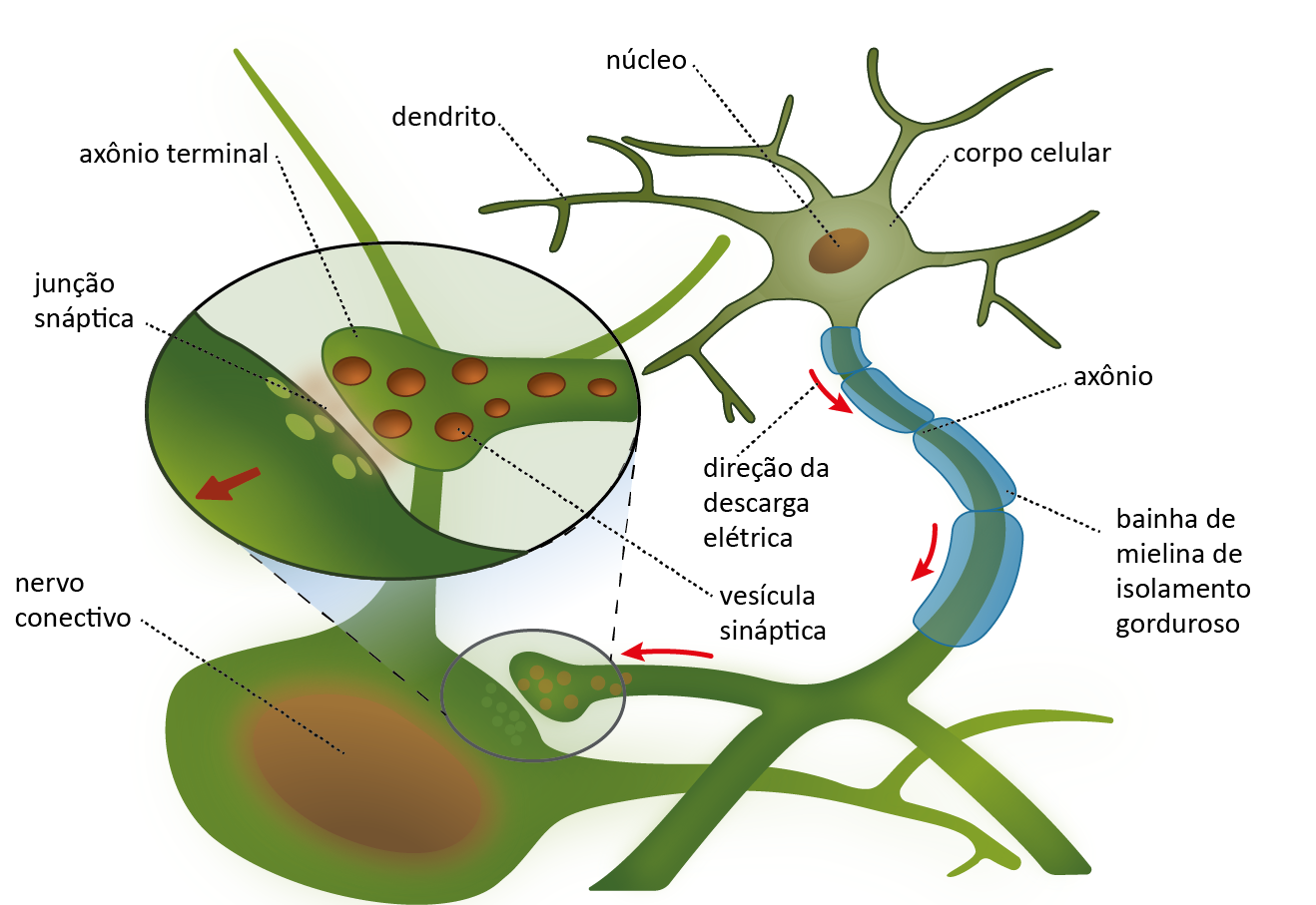 A figura a seguir ilustra o processo de transmissão do impulso nervoso.