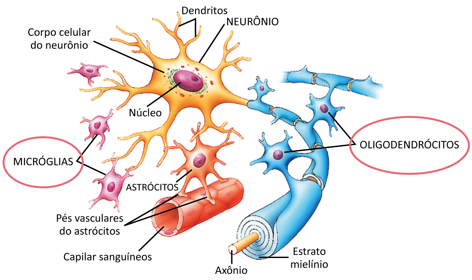 responsáveis pela nutrição, sustentação e proteção dos neurônios.